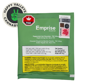 EMPRISE RAPID ORGANIC VEGAN PEPPERMINT HOT CHOCOLATE IS AN ALL-IN-ONE SOLUTION FOR YOUR DAILY DISCRETE CUP OF GOLD DELIVERING RAPID-ACTING 10 MG THC-DOMINANT PRODUCT. Just pour hot water in the top of your favorite mug for a perfect cup of fresh tingly goodness to keep your cozy and warm over the cold winter months or enjoy cold over ice once made for an Iced Hot Chocolate year-round.