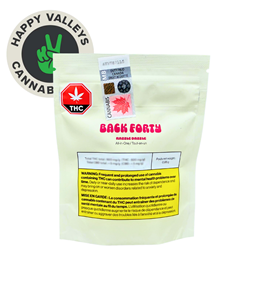 The Back Forty Razzle Dazzle Indica Disposable is a high-potency, all-in-one vape pen with a flavor profile of tart raspberry and creamy vanilla. It's an indica-dominant product designed for relaxation, featuring a rechargeable, USB-C compatible design for on-the-go use. The 0.95g disposable contains a high THC distillate, with dominant terpenes including limonene, caryophyllene, and myrcene.